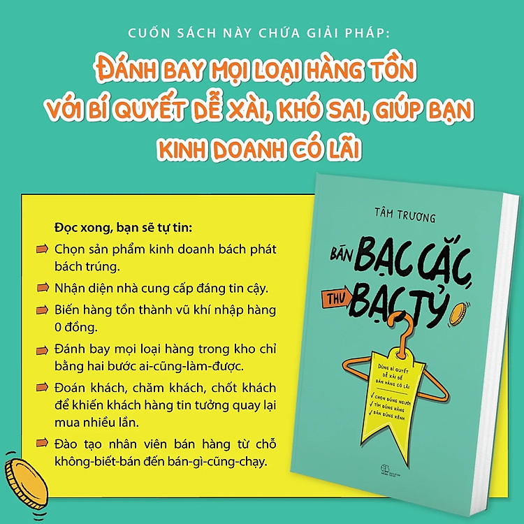 - Cuốn sách này chứa giải pháp: Đánh bay mọi loại hàng tồn với bí quyết dễ xài, khó sai, giúp bạn kinh doanh có lãi.