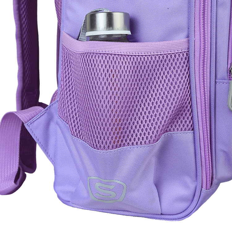 Với hai túi lưới có bo chun ở mặt bên balo, ba mẹ có thể đựng bình nước, sữa hoặc các món ăn vặt cho con đem theo đến trường hoặc dùng để chứa dù, nón cho những ngày em tham gia hoạt động trải nghiệm cùng bạn bè.