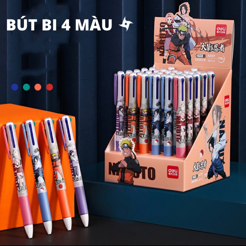 Giới thiệu Bút bi nhiều màu hoạt hình Naruto Deli - Bút bi nhiều ngòi - ngòi 0.7mm - 4 màu mực S597