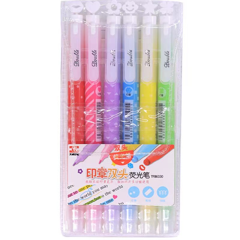Giới thiệu Bút dạ quang 6 màu highlight hai đầu pastel in hình dễ thương, bút đánh dấu nhớ dòng cute nhiều màu marker dễ thương