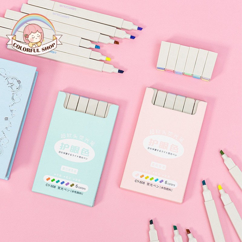 Giới thiệu Bộ bút dạ quang 6 màu xinh xắn tiện dụng, bút đánh dấu bút nhớ