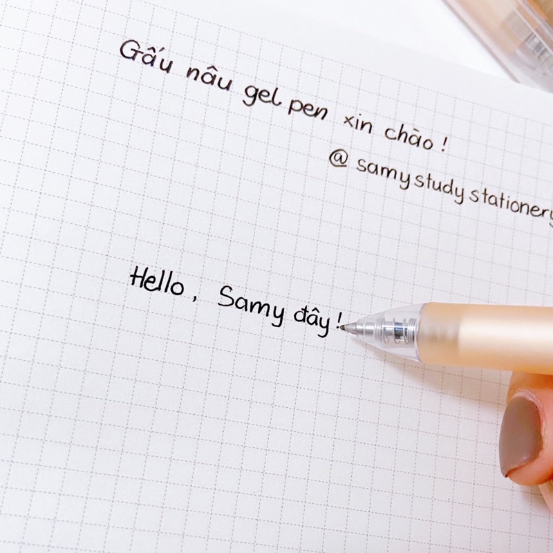 Giới thiệu BÚT GHI BÀI DẠNG BẤM GEL ĐEN 0.5 MM GẤU NÂU DỄ THƯƠNG MỰC RA ĐỀU, VIẾT ÊM