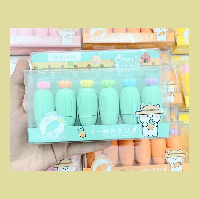 Kích cỡ nhỏ gọn xinh xắn lắm nha. Một set gồm 6 bút nhiều màu để các bạn thay đổi, giúp các trang vở trang sách nhiều màu sắc sinh động nha.