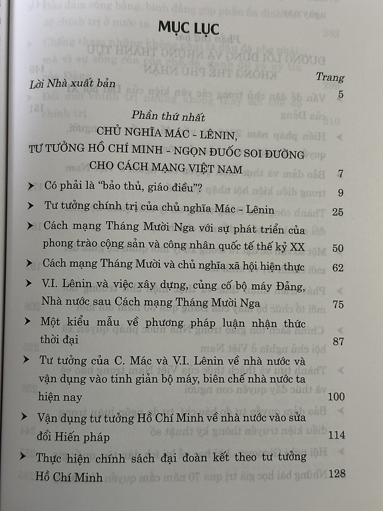 Cuốn sách tập hợp 25 bài chính luận của tác giả viết trong những năm gần đây nhằm trao đổi và làm rõ các giá trị bền vững của chủ nghĩa Mác – Lênin , tư tưởng Hồ Chí Minh, những thành tựu không thể phủ nhận trong công cuộc đổi mới và phát tiển của đất nước dưới sự lãnh đạo đúng đắn của Đảng Cộng sản Việt Nam, trong đó có những thành tựu về dân chủ, quyền con người, tự do thông tin, tôn giáo, đổi mới chính trị, đấu tranh phòng, chống tham nhũng…