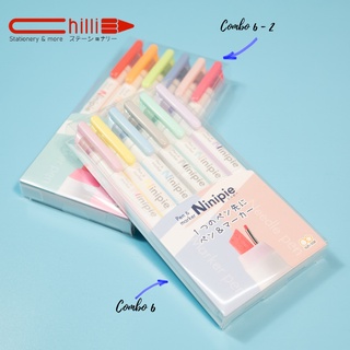 CHILLI Combo 3 + combo 6 bút Ninipie bút + highlight 2 đầu màu pastel siêu xinh