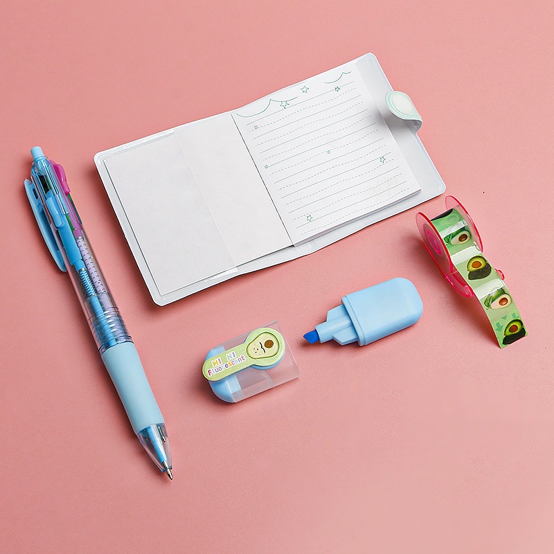 Văn Phòng Phẩm > Bút Các Loại > Bút Dạ Quang || Combo 4 món: Sổ, Bút 4 màu mực, Bút dạ quang, Băng keo mini siêu cute