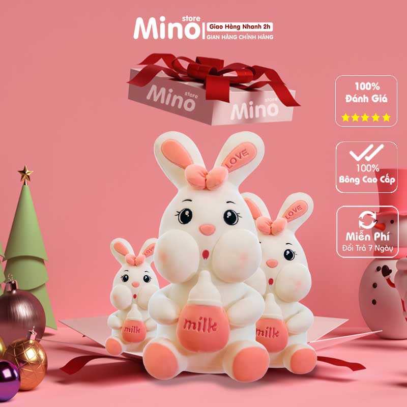 Giới thiệu Gấu Bông Thỏ Hồng Tai Dài Ôm Bình Sữa MINO STORE Size Lớn TH77