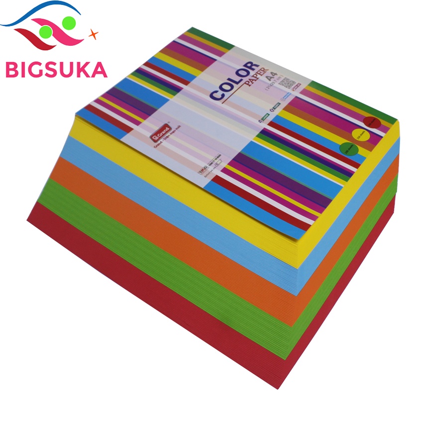 Giấy A4 màu Grand 5 màu trộn - Xấp 100 tờ/5 màu BIGSUKA