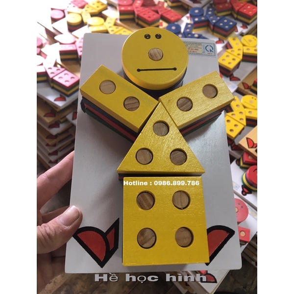 Giúp bé học các hình khối Hề học hình được làm bằng gỗ sơn màu không độc hại với trẻ em. Dùng cho bé nhận biết hình khối và lắp ráp.