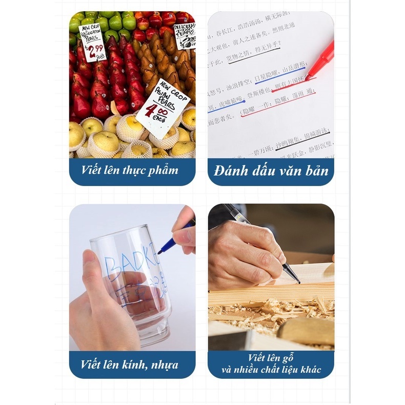 - Có kiểu dáng hiện đại gồm 2 đầu bút khác nhau:- Hai đầu bút kích thước : 0.4 mm và 1 mm- Màu mực đậm tươi, mực ra đều và liên tục.- Độ bám dính của mực tốt trên các vật liệu: Giấy, gỗ, da, nhựa, ...