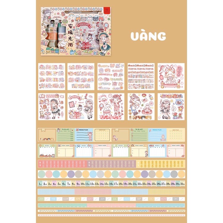 🌼Băng keo giấy trang trí nhiều họa tiết WASHI TAPE dễ thương kèm SET HÌNH DÁN tiện dụng làm phụ kiện trang trí: chai lọ, dán tường, làm thiệp, trang trí sổ, album, làm đồ handmade ..... Phong cách Nhật Bản màu sắc, họa tiết STICKER CUTE siêu dễ thương.