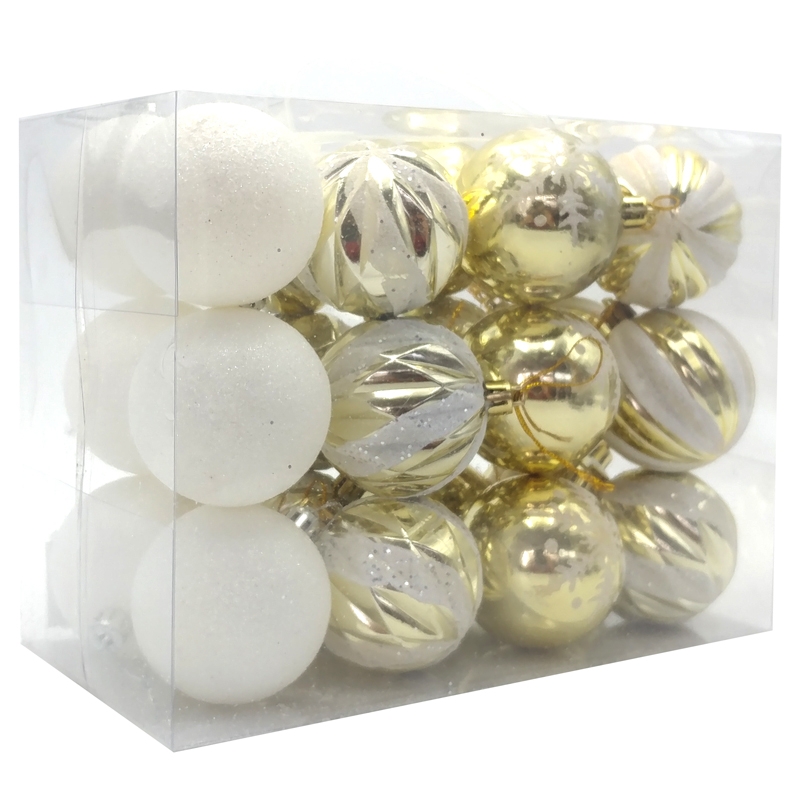 Giới thiệu Hộp 24 Trái Châu Trang Trí Noel - Mẫu 2 - Trắng - Vàng Gold