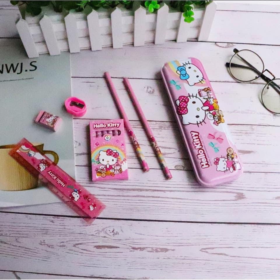 Bộ Hộp Bút gồm 7 món dụng cụ học tập hình Nhân vật Hoạt Hình siêu đáng yêu dành cho bé
