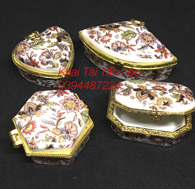 Bộ hộp quà tặng , hộp nhẫn gốm sứ cổ điển 4 món siêu dễ thương