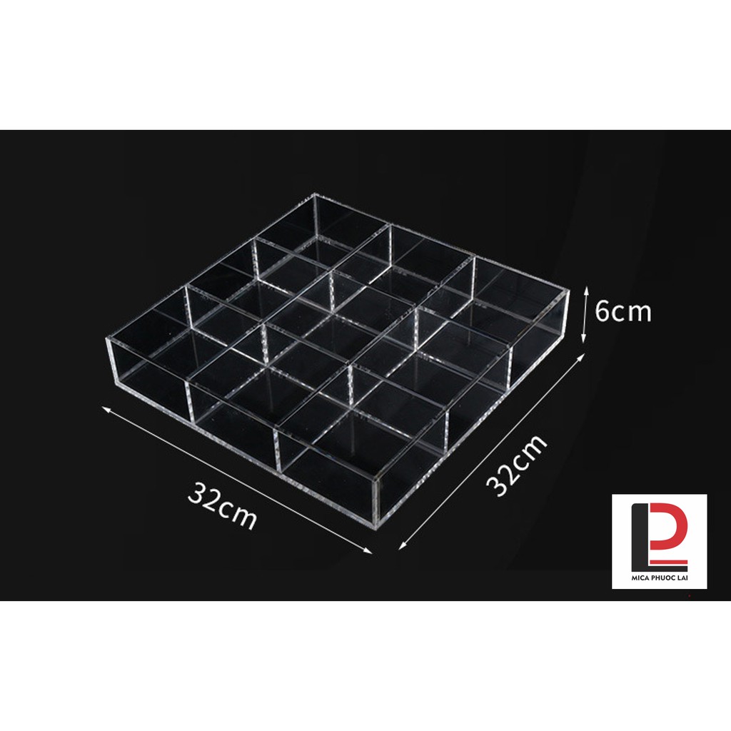 Ưu điểm: Khay mica có 9 ngăn nhỏ dùng để đựng trang sức, phụ kiện thời trang, có thể show sản phẩm cho khách hàng dễ lựa chọn, khay tiết kiệm được diện tích cho người sử dụng