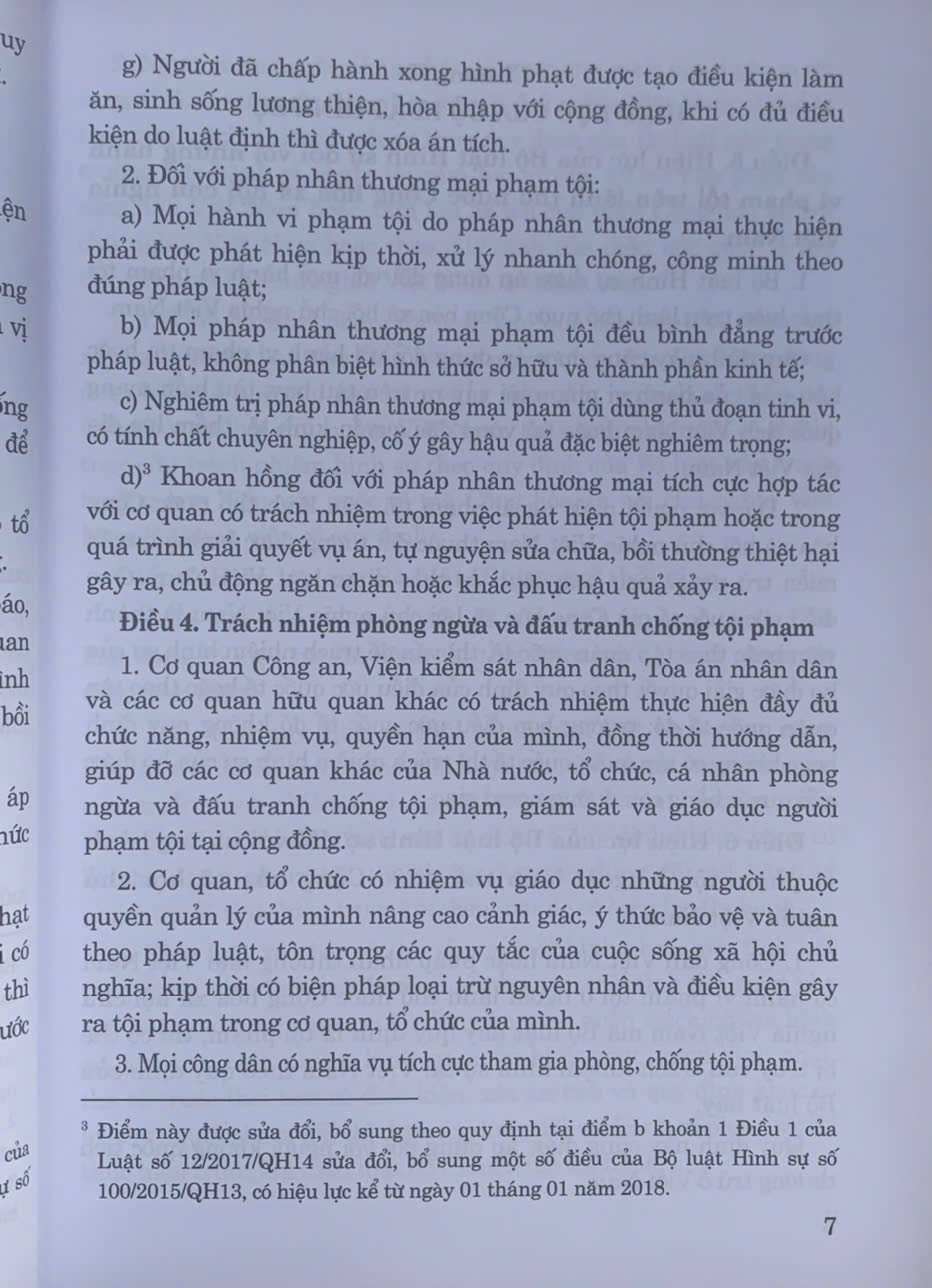 – Luật số 12/2017/QH14 ngày 20 tháng 6 năm 2017 của Quốc hội sửa đổi, bổ sung một số điều của Bộ luật Hình sự số 100/2015/QH13, có hiệu lực kể từ ngày 01 tháng 01 năm 2018;