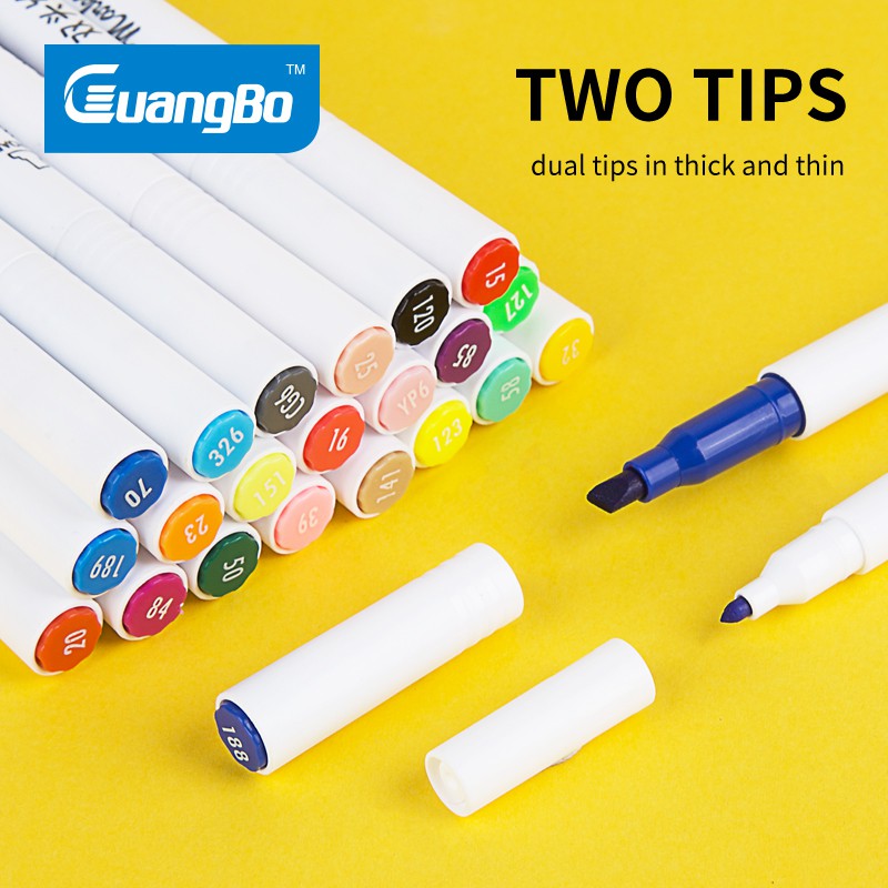 Giới thiệu [NEW ARRIVAL] Bút màu marker 2 đầu GuangBo 36/24/12 màu - rửa được mực - thân tròn mảnh H02225/02226/02227