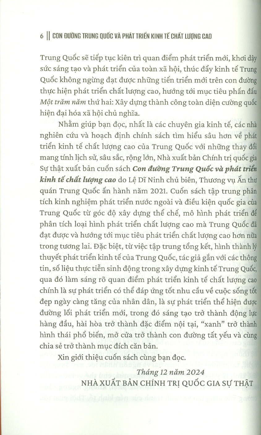Con đường Trung Quốc và phát triển kinh tế chất lượng cao (Sách tham khảo)
