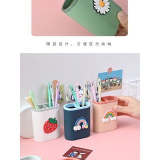 Văn Phòng Phẩm > Thiết Bị Trường Học > Hộp Bút || Ống cắm bút, hộp đựng bút 2 ngăn nhiều màu gắn icon ngộ nghĩnh dùng để bàn học, trang trí.