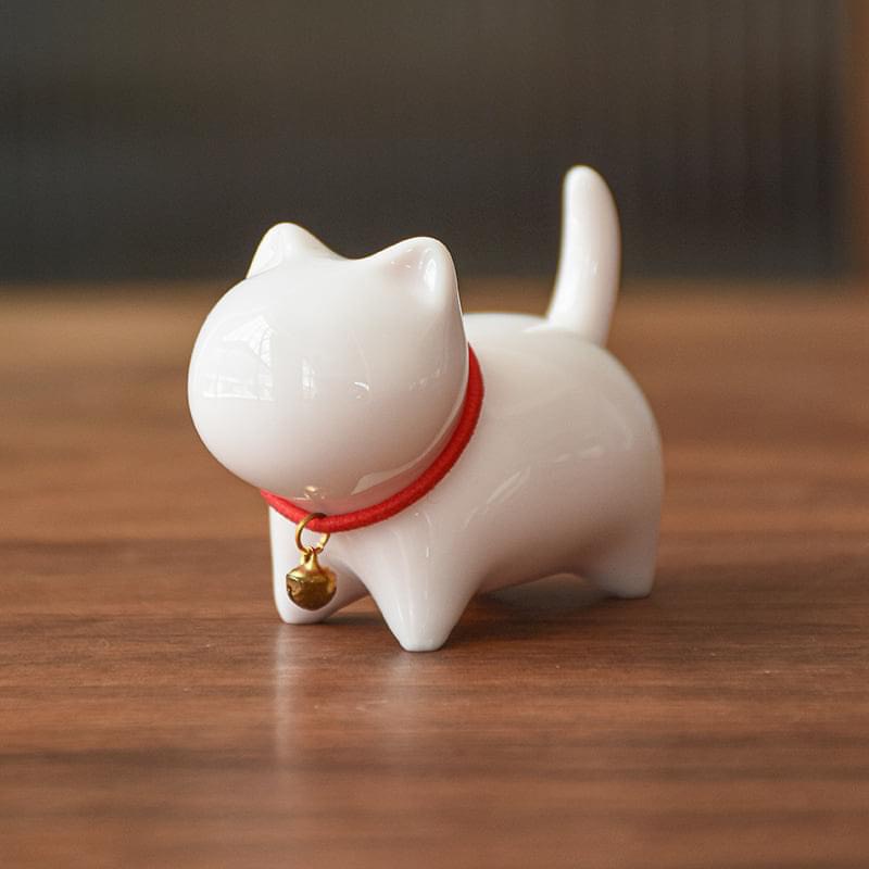 Giới thiệu (Order) Mèo SỨ tài lộc fortune cat gắn chuông chỉ đỏ cầu may an nhàn thanh thịnh năm mới tiểu cảnh trang trí nhà để bàn