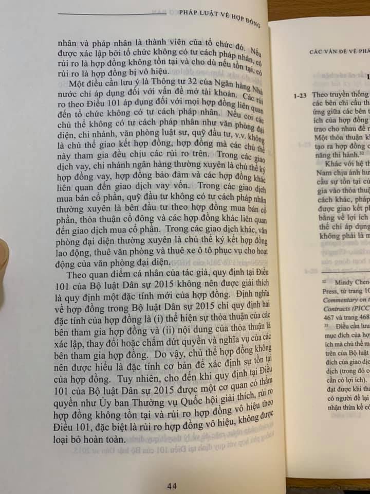 Xin giới thiệu với mọi người cuốn sách mới của Luật sư Trương Nhật Quang về pháp luật hợp đồng. Tác giả Trương Nhật Quang đã viết cuốn sách này trong 4 năm qua với sự hỗ trợ của nhiều đồng nghiệp và bạn bè. Trải dài trong gần 900 trang, cuốn sách phân tích các vấn đề pháp lý cơ bản liên quan đến (i) giao kết hợp đồng; (ii) hiệu lực hợp đồng; (iii) nội dung hợp đồng; (iv) vi phạm hợp đồng và biện pháp khắc phục; (v) miễn trừ trách nhiệm; (vi) chuyển giao quyền và nghĩa vụ; (vii) quyền của bên thứ ba trong hợp đồng vì lợi ích của bên thứ ba; và (viii) nguyên tắc chọn pháp luật áp dụng và cơ quan giải quyết tranh chấp hợp đồng. Có lẽ đây là cuốn sách đầu tiên nghiên cứu một cách có hệ thống các vấn đề pháp luật về hợp đồng của Việt Nam từ góc độ lý thuyết và thực tiễn, tập trung vào các giao dịch tài chính và mua bán doanh nghiệp có yếu tố nước ngoài. Ngoài việc phân tích các quy định của các văn bản pháp luật, cuốn sách cũng phân tích các án lệ và nhiều bản án, quyết định và phán quyết của tòa án và trọng tài mà Công ty luật YKVN đã sưu tầm trong thời gian qua. Cuốn sách được viết chủ yếu dành cho luật sư, người tham gia công tác giảng dạy và sinh viên luật mong muốn tìm hiểu các vấn đề pháp lý về hợp đồng. Đặc biệt, cuốn sách giúp các luật sư hành nghề có thể tham khảo khi tư vấn trong các giao dịch thương mại có yếu tố nước ngoài. Cuốn sách tập trung phân tích phạm vi mà các bên có thể thỏa thuận trong hợp đồng để phân bố rủi ro. Để giúp người đọc tiện tra cứu, cuốn sách có (i) bảng tra cứu từ khóa, (ii) bảng tra cứu án lệ, bản án và quyết định và (iii) danh sách các tài liệu trích dẫn.