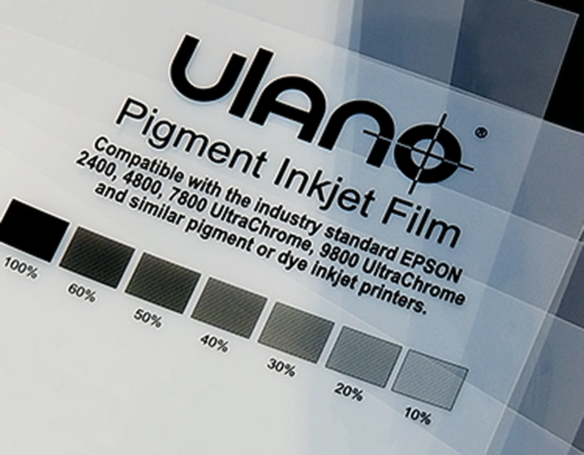 Phim chụp bản dùng trong in phun là loại chất liệu đặc biệt, không phải giấy, dùng nhiều trong in công nghiệp, bán công nghiệp hơn là trong in văn phòng. Film chế bản có thể được làm từ nhiều chất liệu khác nhau như pet, pvc, v...v... tùy thuộc vào mục đích sử dụng. Đa số các dòng sản phẩm film đểu có tính chất như sau: Được phủ lớp hóa chất bắt mực in phun giúp mực khô nhanh giữ được nhiều mực; độ bền cao trên film chụp bản, lớp thuốc mịn phù hợp cho máy in có độ phân giải cao. Phim có nhiều loại như: trong suốt hoặc trắng đục, xanh đục tùy vào mục đích sử dụng.