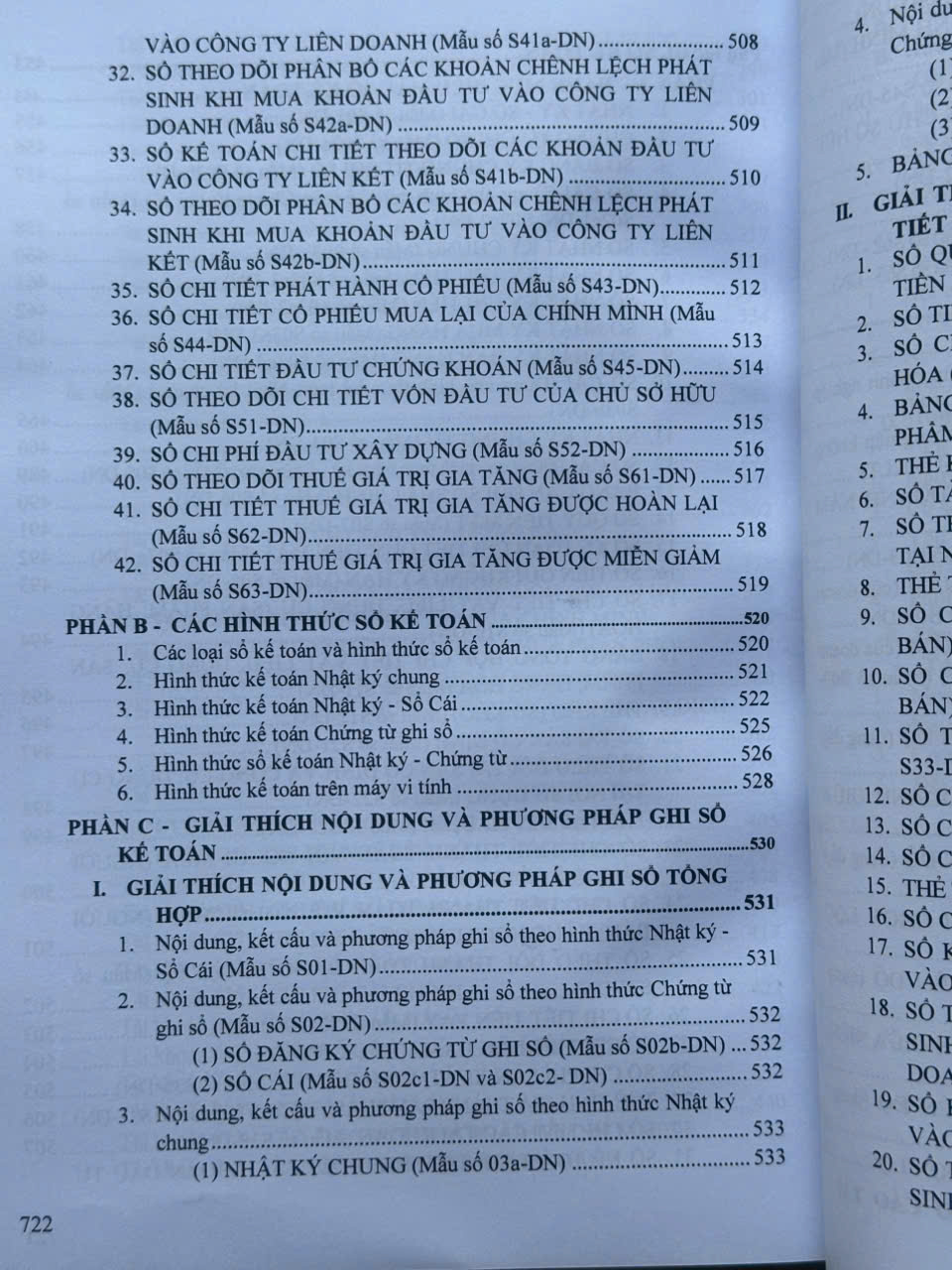 – Hệ thống Sổ kế toán: Danh mục biểu mẫu (tham khảo), các hình thức sổ kế toán, giải thích nội dung và phương pháp ghi sổ kế toán;