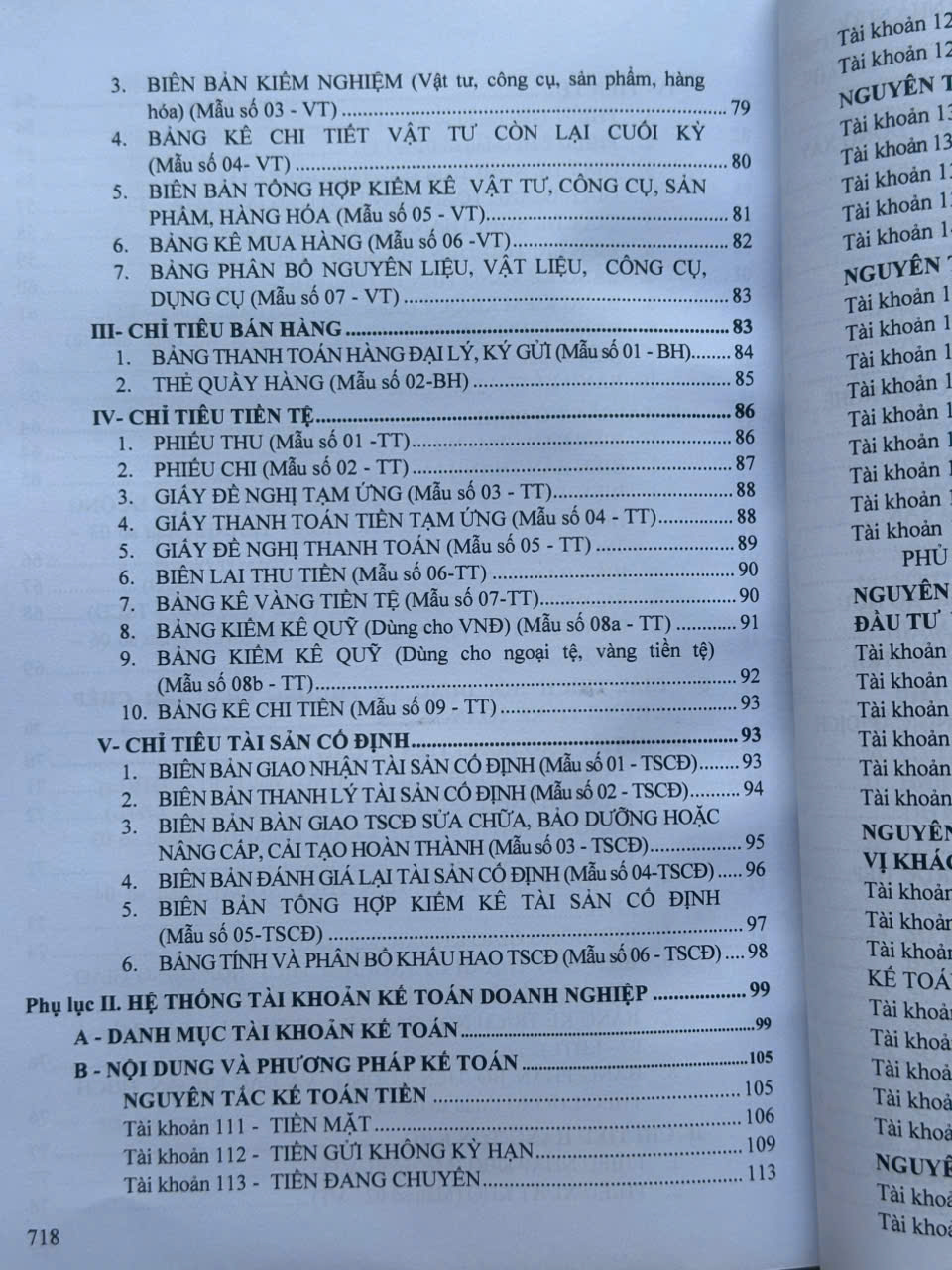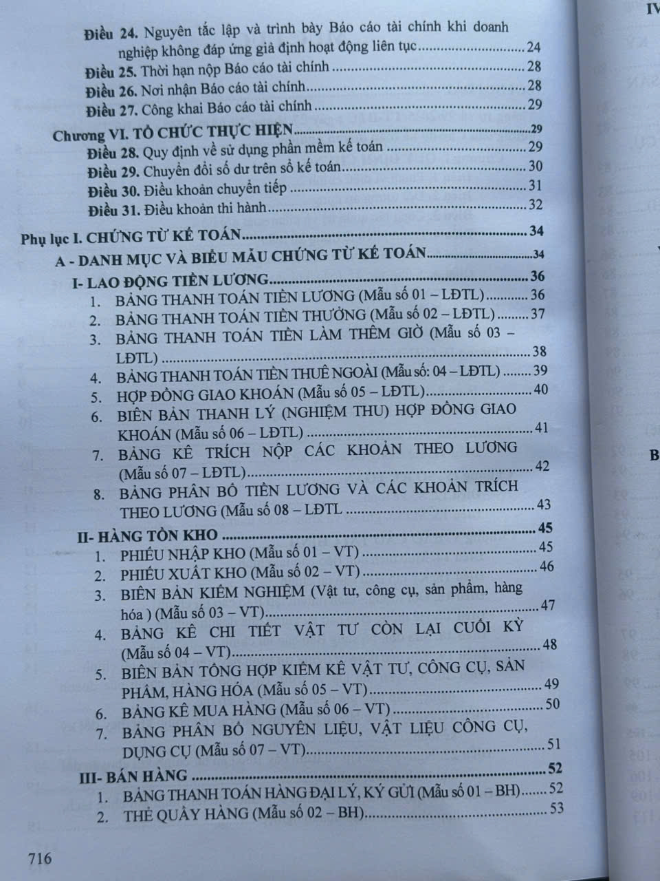 – Hệ thống Chứng từ kế toán: Danh mục biểu mẫu (tham khảo), giải thích nội dung và phương pháp ghi chép chứng từ kế toán;