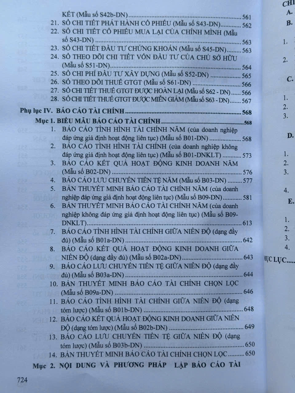 – Hệ thống báo cáo tài chính: Danh mục biểu mẫu, nội dung và phương pháp lập, trình bày Báo cáo tài chính.