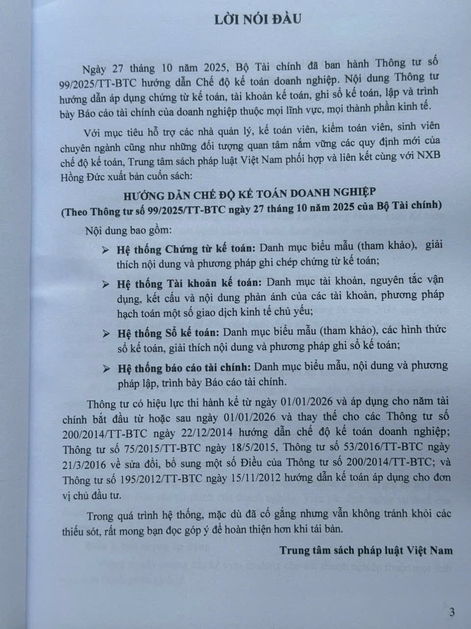 Sách Hướng Dẫn Chế Độ Kế Toán Doanh Nghiệp (Theo Thông tư số 99/2025/TT-BTC ngày 27 tháng 10 năm 2025 của Bộ Tài chính)