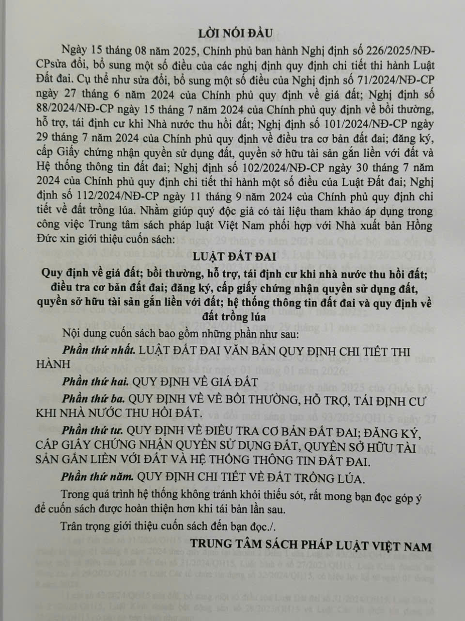 Trong cuốn sách này phần LUẬT ĐẤT ĐAI đã được hợp nhất nên tiện tra cứu và áp dụng ạ