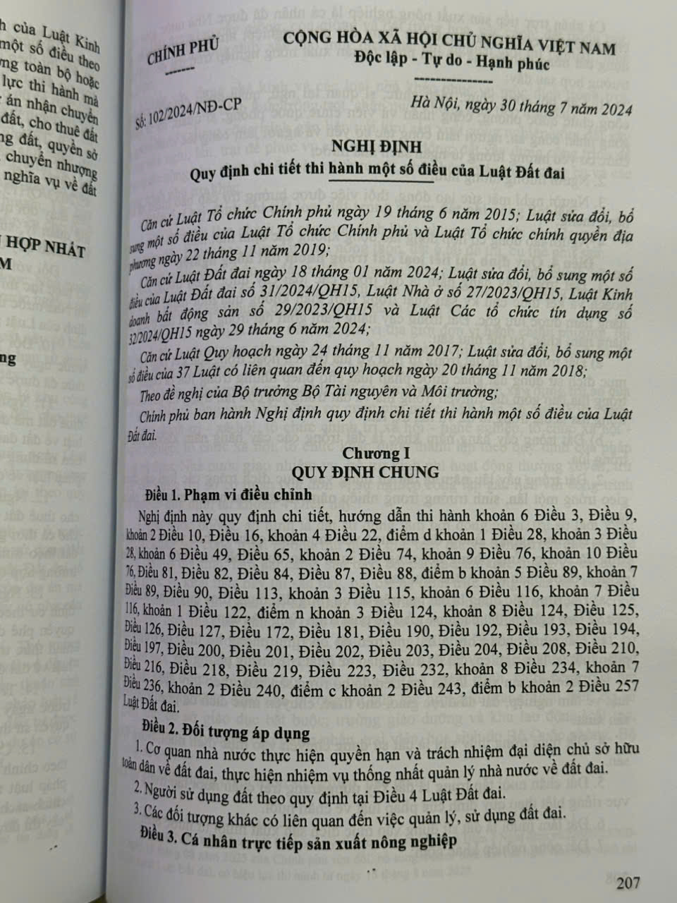 Sửa đổi, bổ sung một số điều của Nghị định số 71/2024/NĐ-CP ngày 27 tháng 6 năm 2024 của Chính phủ quy định về giá đất; Nghị định số 88/2024/NĐ-CP ngày 15 tháng 7 năm 2024 của Chính phủ quy định về bồi thường, hỗ trợ, tái định cư khi Nhà nước thu hồi đất; Nghị định số 101/2024/NĐ-CP ngày 29 tháng 7 năm 2024 của Chính phủ quy định về điều tra cơ bản đất đai; đăng ký, cấp Giấy chứng nhận quyền sử dụng đất, quyền sở hữu tài sản gắn liền với đất và Hệ thống thông tin đất đai; Nghị định số 102/2024/NĐ-CP ngày 30 tháng 7 năm 2024 của Chính phủ quy định chi tiết thi hành một số điều của Luật Đất đai; Nghị định số 112/2024/NĐ-CP ngày 11 tháng 9 năm 2024 của Chính phủ quy định chi tiết về đất trồng lúa.