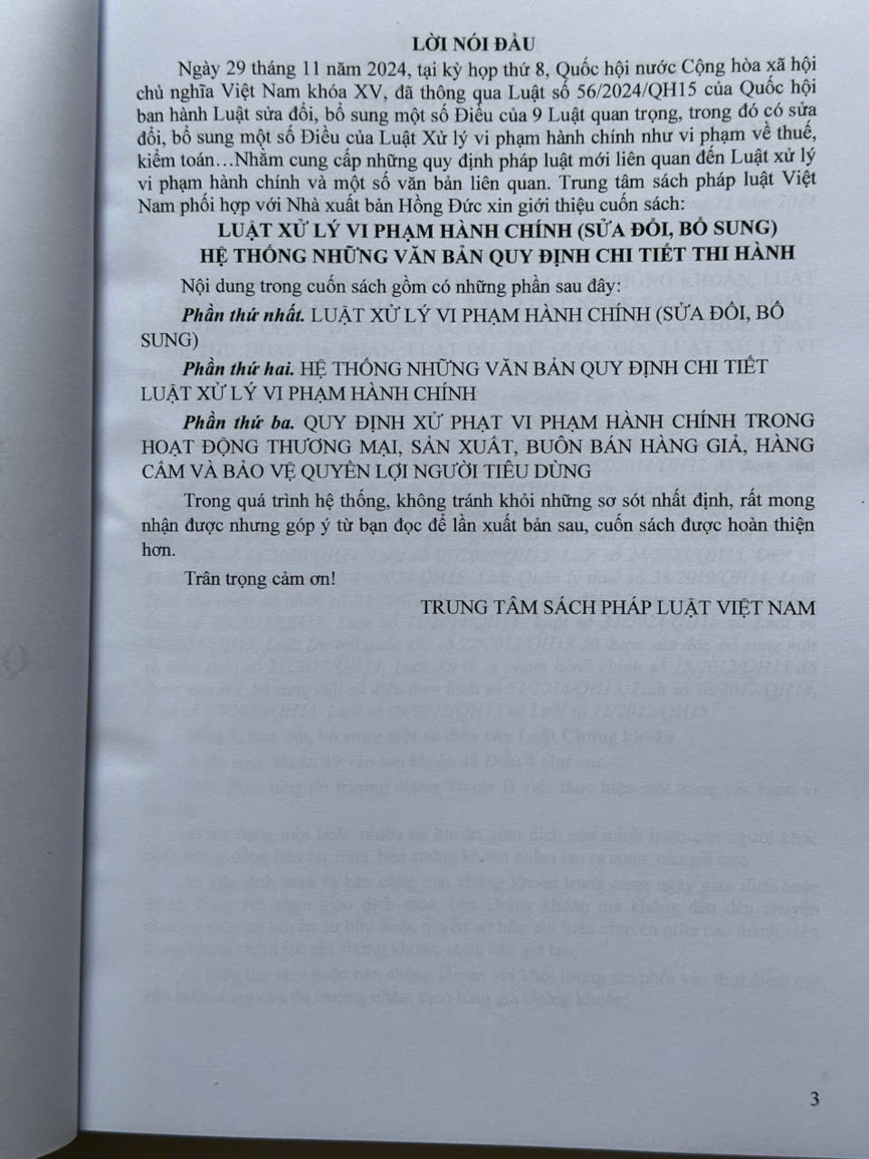 Nhằm phổ biến đến Quý Cơ quan, Đơn vị và Quý khách hàng thân thiết nắm bắt kịp thời những quy định mới nêu trên. Nhà sách Nam Việt xin trân trọng giới thiệu cuốn sách: Luật Xử Lý Vi Phạm Hành Chính sửa đổi, bổ sung năm 2024 – Hệ Thống Những Văn Bản Quy Định Chi Tiết Thi Hành