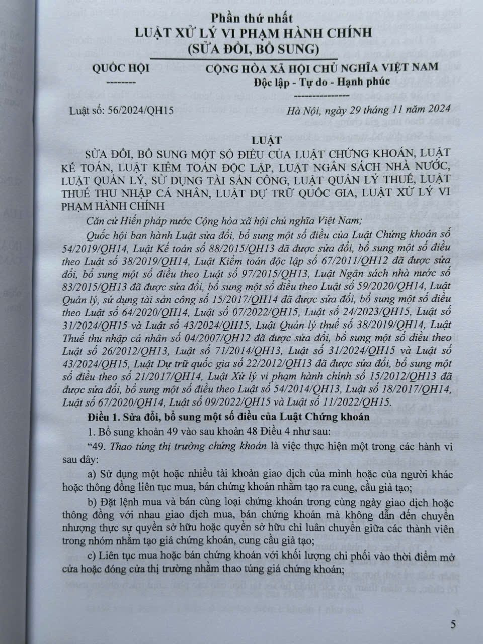 Phần thứ nhất. LUẬT XỬ LÝ VI PHẠM HÀNH CHÍNH (SỬA ĐỔI, BỐ SUNG NĂM 2024)