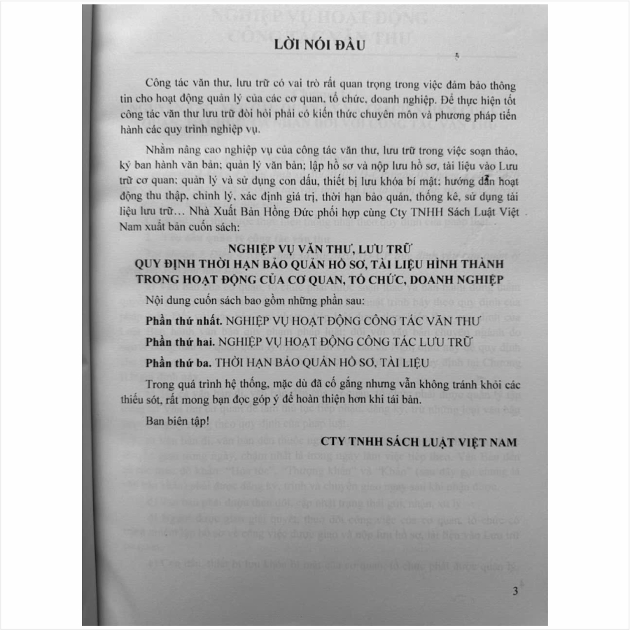 Nhà sách Nam Việt – Namvietbook xin trân trọng giới thiệu cuốn sách Nghiệp Vụ Văn Thư Lưu Trữ - Quy Định Thời Hạn Bảo Quản Hồ Sơ, Tài Liệu Hình Thành Trong Hoạt Động Của Cơ Quan, Tổ Chức, Doanh Nghiệp
