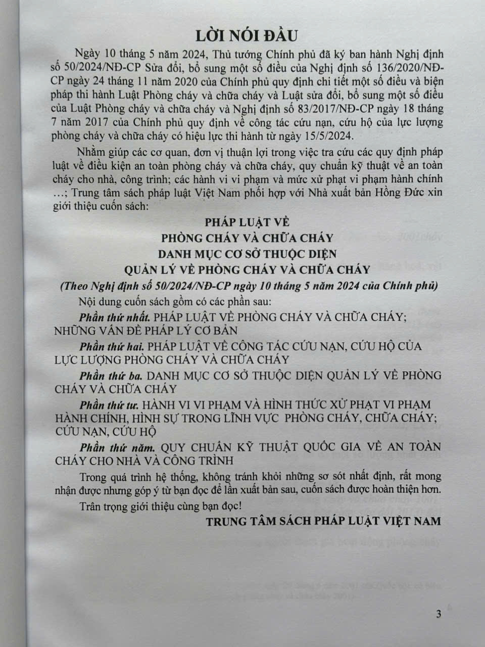Nhà sách Nam Việt – Namvietbook xin trân trọng giới thiệu cuốn sách: Pháp Luật Về Phòng Cháy Và Chữa Cháy - Danh Mục Cơ Sở Thuộc Diện Quản Lý Về Phòng Cháy Và Chữa Cháy (Nghị định 50/2024/NĐ-CP)