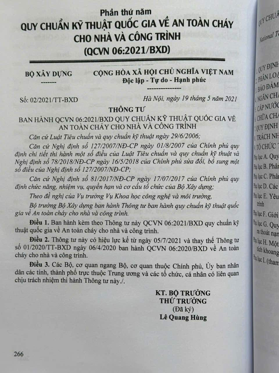 Phần thứ năm. QUY CHUẨN KỸ THUẬT QUỐC GIA VỀ AN TOÀN CHÁY CHO NHÀ VÀ CÔNG TRÌNH