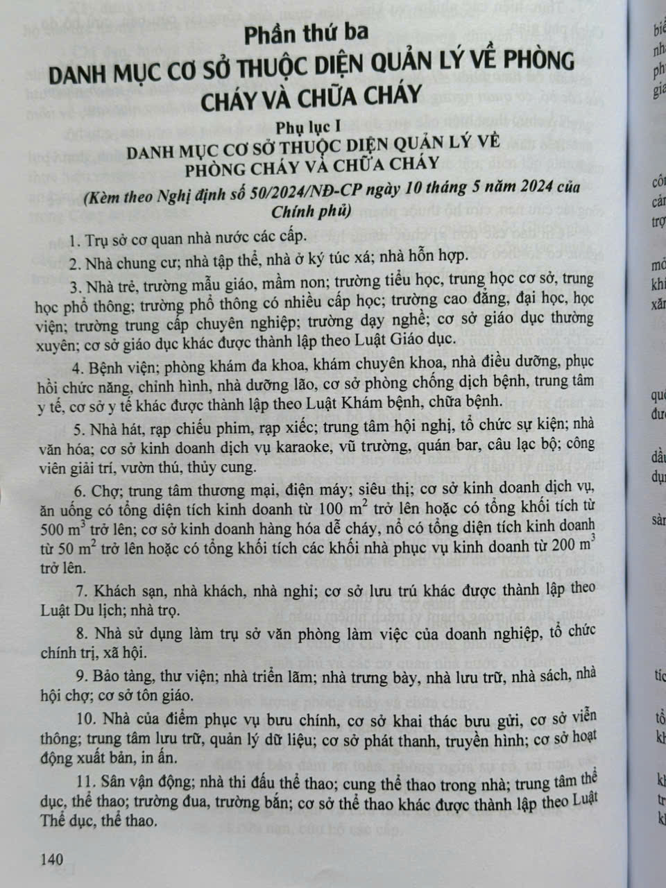 Sách Pháp Luật Về Phòng Cháy Và Chữa Cháy - Danh Mục Cơ Sở Thuộc Diện Quản Lý Về Phòng Cháy Và Chữa Cháy (Nghị định 50/2024/NĐ-CP)