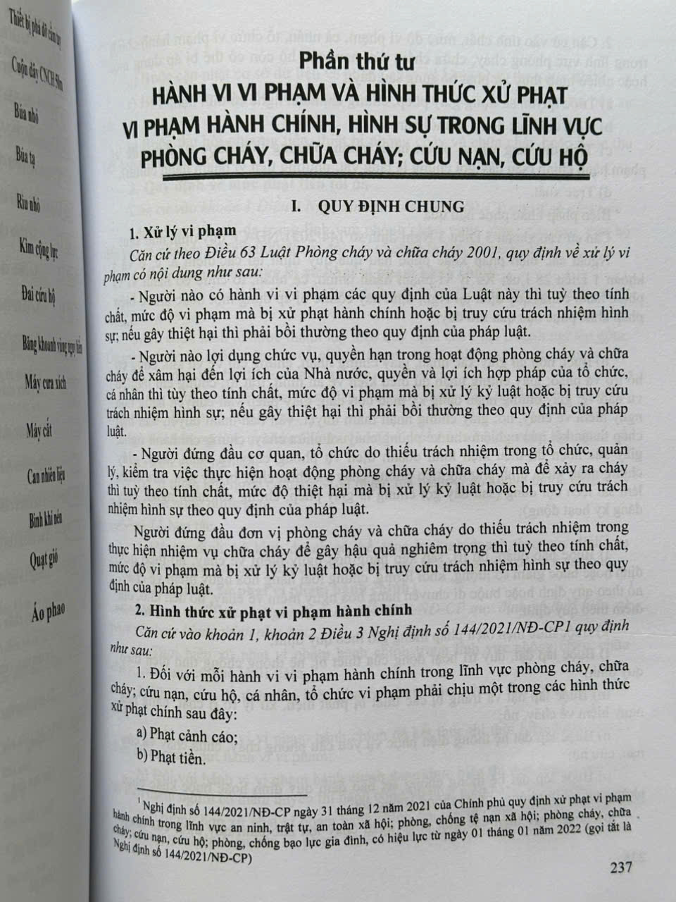 Phần thứ tư. HÀNH VI VI PHẠM VÀ HÌNH THỨC XỬ PHẠT VI PHẠM HÀNH CHÍNH, HÌNH SỰ TRONG LĨNH VỰC PHÒNG CHÁY, CHỮA CHÁY; CỨU NẠN, CỨU HỘ