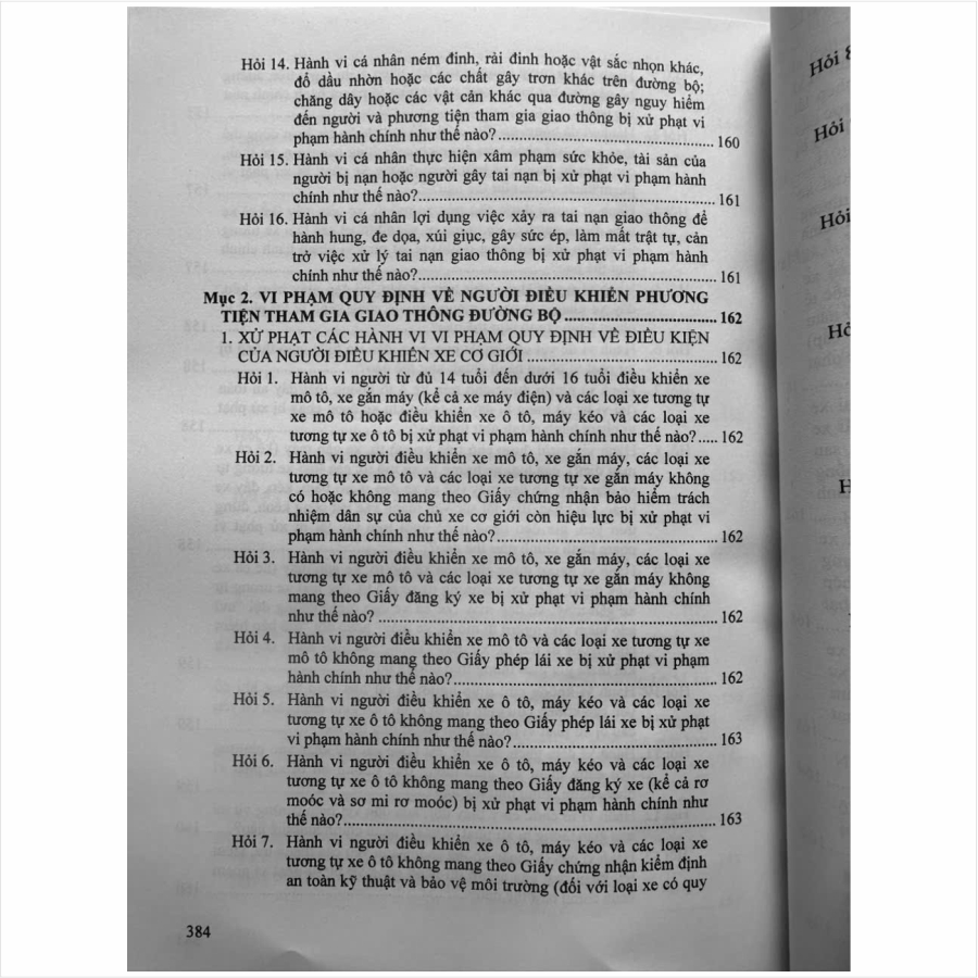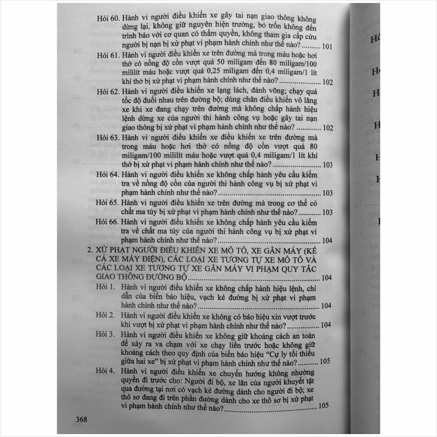 Phần thứ hai. HỎI ĐÁP PHÁP LUẬT VỀ HÀNH VI VI PHẠM, HÌNH THỨC, MỨC XỬ PHẠT VÀ BIỆN PHÁP KHẮC PHỤC HẬU QUẢ VI PHẠM HÀNH CHÍNH TRONG LĨNH VỰC GIAO THÔNG ĐƯỜNG BỘ