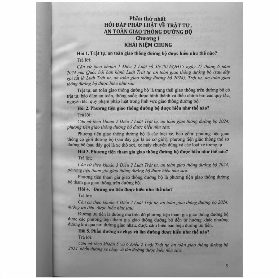 Phần thứ nhất. HỎI ĐÁP PHÁP LUẬT VỀ TRẬT TỰ, AN TOÀN GIAO THÔNG ĐƯỜNG BỘ