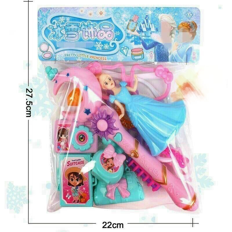Set búp bê elsa kèm gậy thiên thần gồm 12 chi tiết : búp bê elsa, gậy thiên thần, kính, máy ảnh, túi xách, kẹp tóc...
