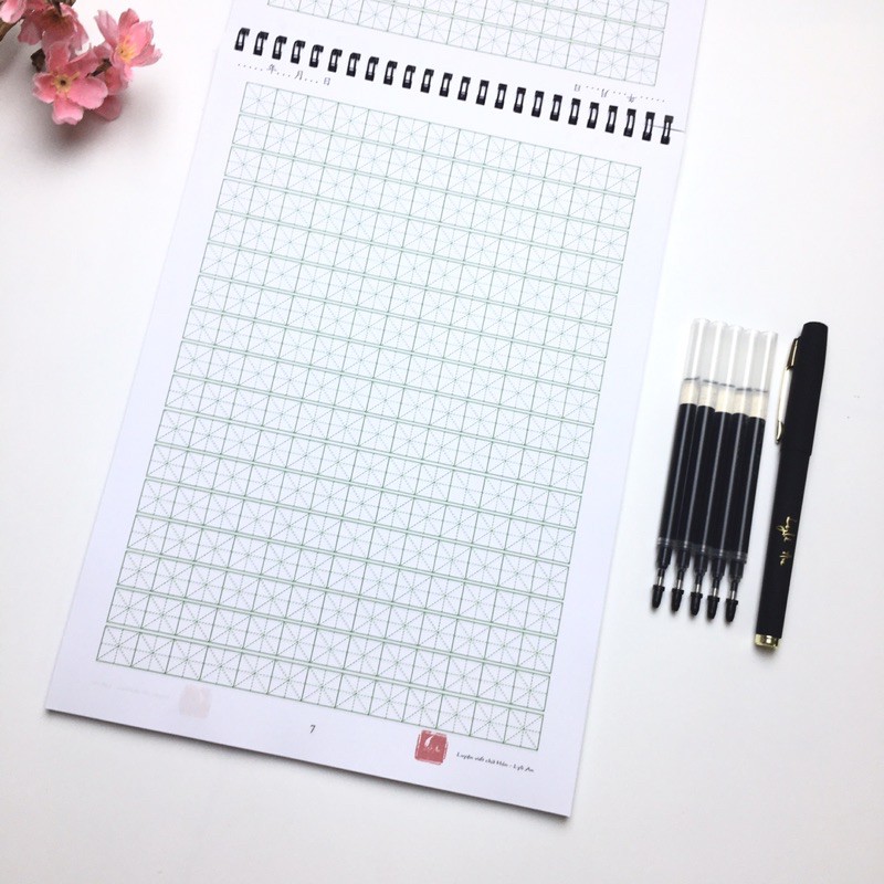 📚 Chất lượng giấy Double A dày đẹp, không bị lem mực. Ô chữ to vừa phải (1,4cm) với các đường kẻ xuyên tâm màu xanh làm nổi nét bút và căn chỉnh nét dễ dàng.