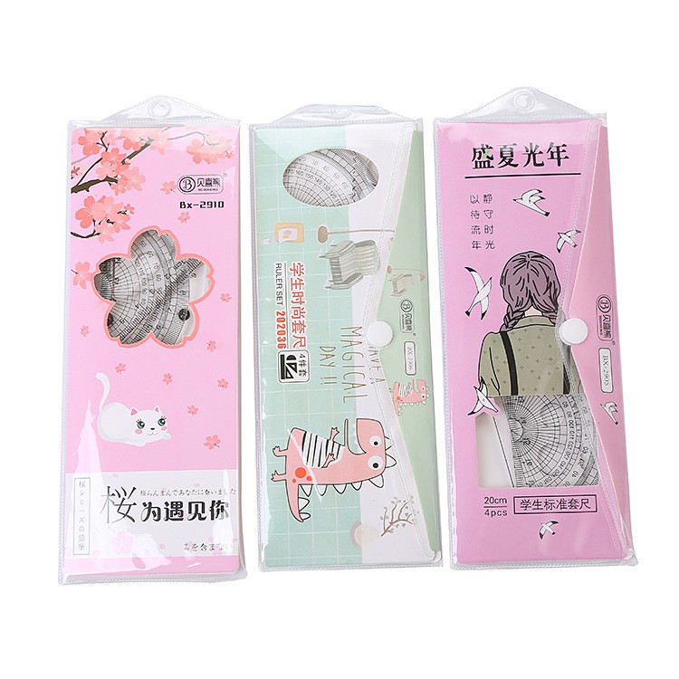 Bộ thước kẻ cứng 4 món tiện lợi cho học sinh và sinh viên