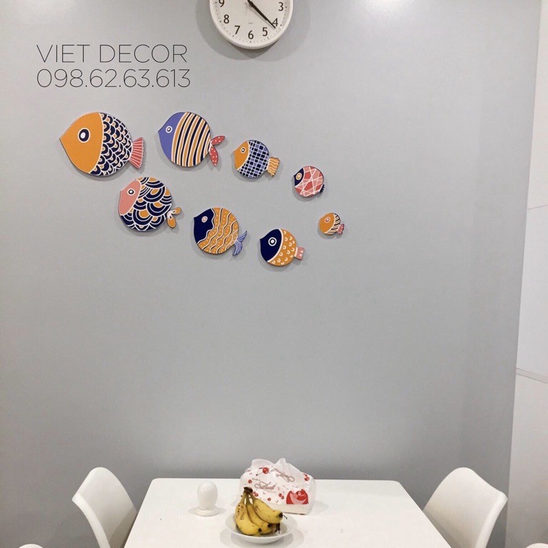 Giới thiệu TRANH CÁ Dán tường Trang trí Nhà cửa – Bộ tranh Dán tường 8 Em Cá Hoa - Fomex Dày dặn, Có sẵn băng keo đi kèm