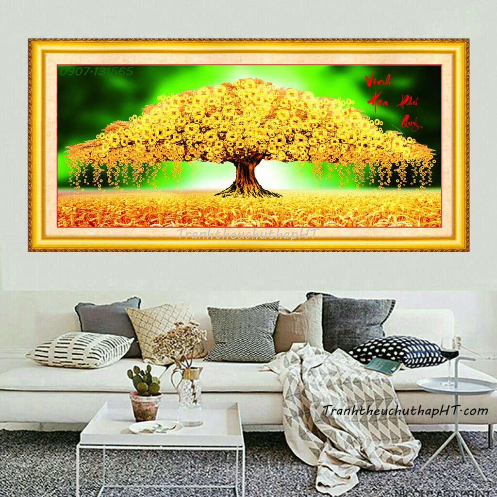 Ý nghĩa: Tranh đính đá cây tiền – Phát tài thịnh vượng. Tranh làm cho không gian sống trở nên sáng đẹp sang trọng, quý phái, sung túc, bình an.
