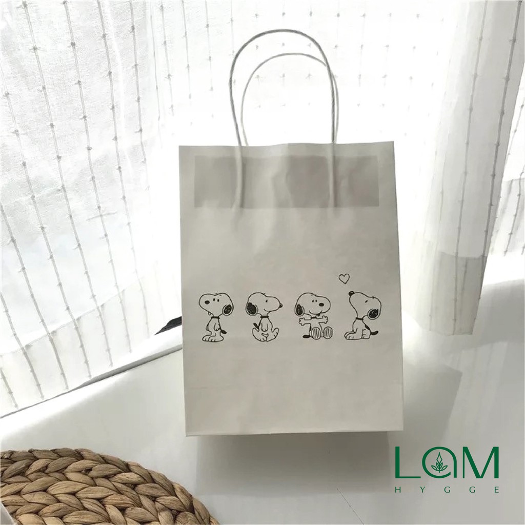 TÚI GIẤY KRAF TRẮNG ĐỂ ĐỰNG ĐỒ MUA SẮM HÌNH HOẠT HÌNH SNOOPY DỄ THƯƠNG, TÚI ĐỰNG QUÀ TẶNG